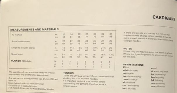 Cardigans are knitted in “Budget buy” DK yarn but any suitable DK yarn should work. Please do a tension square to get the correct size for your project.