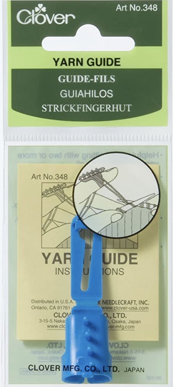Clover yarn guide is helpful while knitting with two or more yarns.
