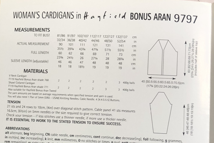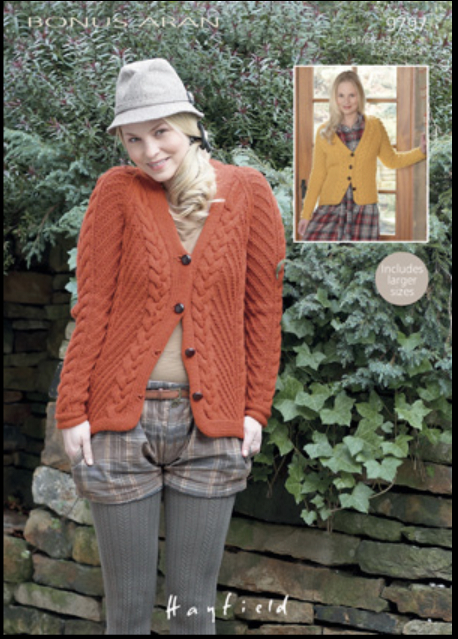 women’s cardigan knitted in Bonus Aran but any Aran would work.
