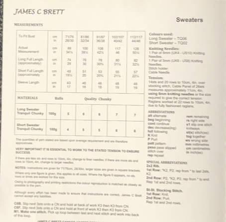 This sweater is knitted James Brett Tranquil chunky but any chunky should work. Please complete a tension square to get the correct size for your project.