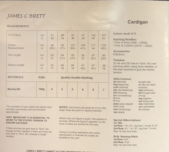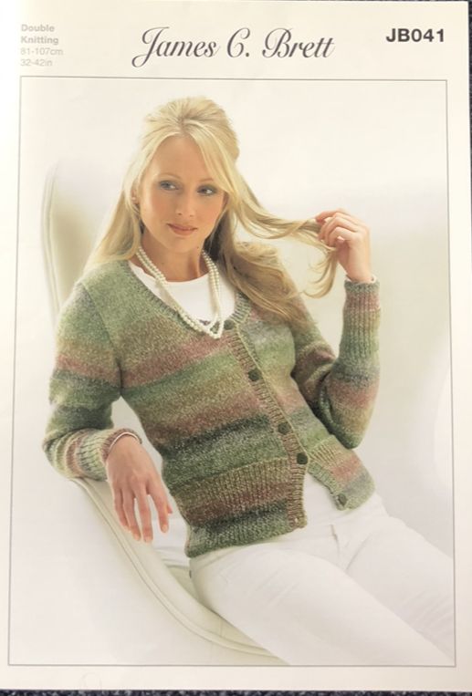 This ladies cardigan is knitted in the popular Marble DK, using 4mm and 3.25mm ,Tension 22sts x28rows.