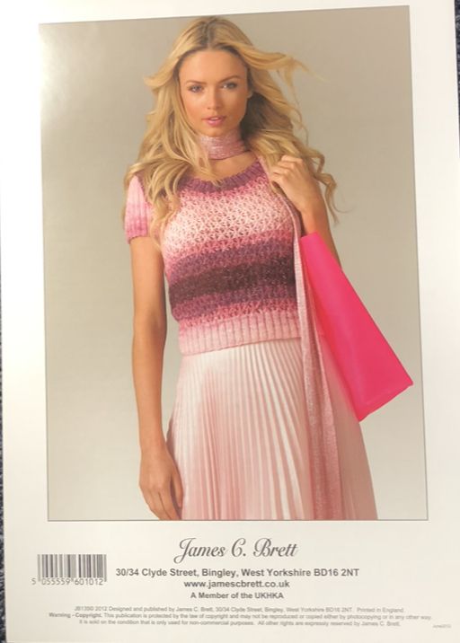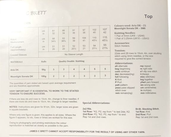 knitted in James Brett Aria and moonlight sonata DK, using 4mm and 3.25mm ,Tension 22sts x 28rows.