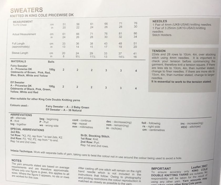 Sweaters are knitted in King cole pricewise DK but any suitable DK would work, please complete a tension square to get the correct size for your project.