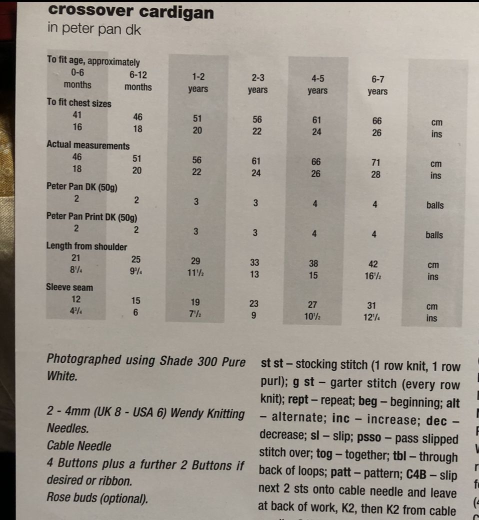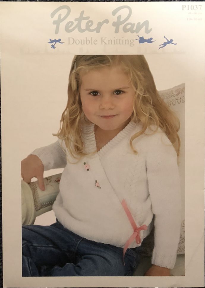 crossover cardigan using Peter Pan DK size 16″-26″.Other suitable DK yarn can be used please do a tension square first to get the correct size for the project. Wendy Peter Pan Baby DK 50g