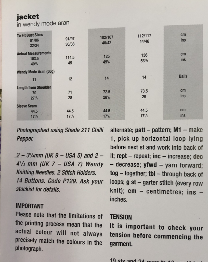 Jacket is knitted in Wendy mode aran but any suitable aran should work . Please do a tension square to get the correct size for your project.
