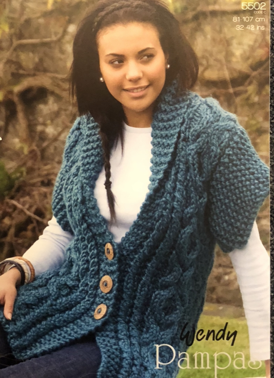 Waistcoat is knitted in Wendy Pampas but any super chunky yarn should work, it is important to check your tension to get the correct size for your project.